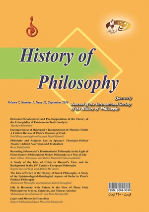 One of the issues which has united the ontological, epistemological, and anthropological dimensions of philosophical thought in the course of history and has continually affected and determined the related social and political directions and general trends is “order”. In other words, order enjoys three ontological, epistemological, and anthropological aspects with respect to political life in society and can function as the basis for the interpretation and formation of the history of philosophy. In Greek philosophy, order is one of the philosophical principles which, due to its influence over different schools of philosophy and philosophers during the whole history of philosophical thought, enjoys an important and unique role and status. The issue of order in Platonic philosophy proved to be a turning point in this regard. Accordingly, in this paper it has been tried to explore the philosophical concept of order from its epistemological, ontological, and anthropological aspects in the history of Greek philosophy ,in general, and in Platonic philosophy, in particular. The writers have also aimed to demonstrate its influence and directive role in Plato’s political philosophy. Therefore, following an analytic-descriptive method, they firstly cast a historical glance at the concept of order in the works of pre-Platonic thinkers. Then they investigate his general philosophy and, particularly, his political philosophy with respect to the above-mentioned dimensions while emphasizing his desirable political and educational systems based on his idea of order. Their findings indicate that a philosophical thought based on order might begin with a mythological and naturalist view; nevertheless, with the later development of human thought, it shifts its attention to a kind of order with mathematical, cosmological, and metaphysical tendencies. Following this process, the Platonic natural and mathematical view of order unites with a divine and virtuous view of order. Consequently, as both the context and basis of other virtues and also as the ultimate goal of philosophy, it develops a political-social form in connection with law.