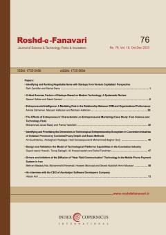 3. صفایی ناصر، طالقانی نیا فرشته و غلامیان فاطمه، " اولویت بندی وتحلیل معیارهای مؤثردرعملکردسازمان های دانش بنیان بارویکردمدیریت دانش درمراکزرشدوپارک ها ی علم وفناوری شهرتهران"، فصلنامه رشد و فناوری، سال پانزدهم، شماره57، زمستان 1397.